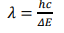 Where h is the Planck constant, c the speed of light and ∆E the energy difference of the states involved 49.