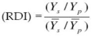 YS and YP are stress and optimal yield of a given genotype, respectively. Y`P and Y`S are average yield of all genotypes under optimal and stress conditions, respectively.