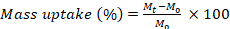 Gravimetric analysis was used to estimate the amount of penetrated acid solutions by measuring mass change and dimensional change. Each specimen was removed from the solution and patted dried by towel/tissue, and then the mass was measured on a digital balance with an accuracy of 0.0001 g. The change in mass of the specimens was calculated based on Eq. 1, where Mt is mass of specimen at time t and M0 is initial mass of specimen.