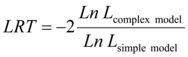 (Likelihood Ratio Test, with Ln L being the logarithm of the likelihood) is distributed as a χ2 with the degrees of freedom being the difference of number of parameters between the most complete model and the simplest one 41.