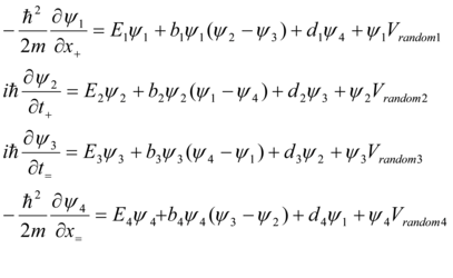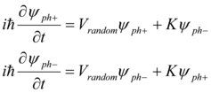 Consider if Vm are random numbers uncorrelated from site to site and distributed with a density ρ(Vm). The hopping amplitudes Wr, in contrast, will be taken to be nonrandom and to decrease fast for hops of increasing length r. As it was shown 5, 7 this case can be reduced to the standard mapping form. On the other hand, the process of interaction between a photon and electron or positron can be interpreted as a random one, which represents either penetrating of a photon through or reflecting from a potential barrier of the electron or positron field. That brings to the temporal form of coupled Shrodinger equations: