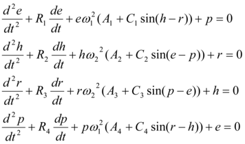For numerical analysis the system (3) was reduced to four coupled differential equations of the second order: