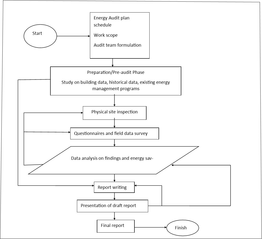 1. Preparation/ Pre-audit phase: This involves collecting data on the hostel facility, including its physical characteristics, energy consumption history, and any existing energy management systems or programs.