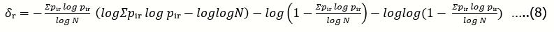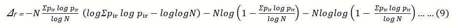 hr = ̶ K Σpir log pir) / (K log N) = ̶ Σpir log pir) / log N. ……..(6)