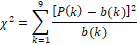 where i corresponds to the values that go from 1 to 9 see details in 9. With this distribution, we calculate the Pearson value X2, which means the goodness of fit statistics according to this equation: