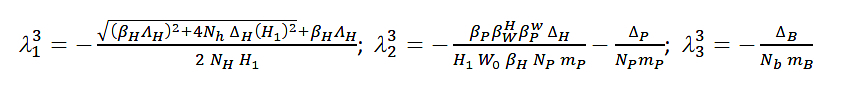 where three new variables (ΔH, ΔB, and ΔP) have been introduced indicated in (Table 1) to simplify the equation in this paper. These solutions reveal that the different populations depend exclusively on each population and are not conditioned on each other.
