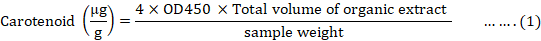 Total carotenoids (μg/ g DM) 271.9 ± 0.41 48.8 ± 0.26 9.41 ± 0.17