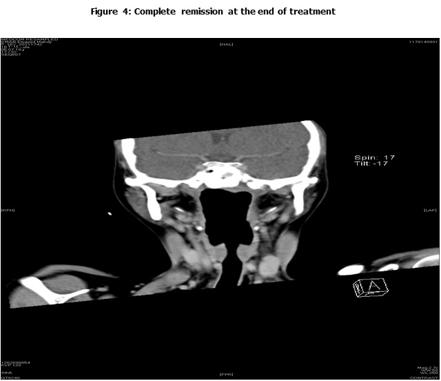 Tumor response was evaluated using the modified version of the Response Evaluation Criteria in Solid Tumor (RECIST) which included volumetric measurement of the primary NPC, and assessment of associated adenopathy. Measurable and non-measurable metastatic foci in the lungs, bones and liver were also evaluated9.