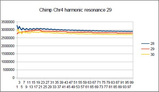 Chimp chromosome4 harmonic Lucas resonance 29.