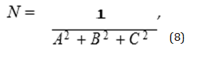 where N is the normalization coefficient, A, B, C are the coefficients of the equation of the plane of the triangle.