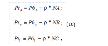 In addition, the distance from the point P6 to the plane of the triangle T1T2T3 is found. For this, the coordinates of the point P6 are substituted into equation (9).