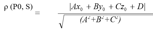 where ρ (P0, S) is the distance from the point P0 to the plane S, A, B, C, D are the coefficients of the equation of the plane S, (x0, y0, z0) are the coordinates of the point P0.