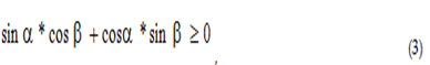 The values cosα and cosβ can be calculated using the vector dot product formula 7: