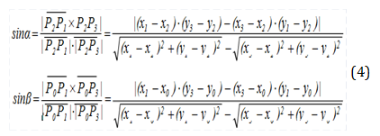 where α- angle Р1Р2Р3, and β - angle Р1Р0Р3.